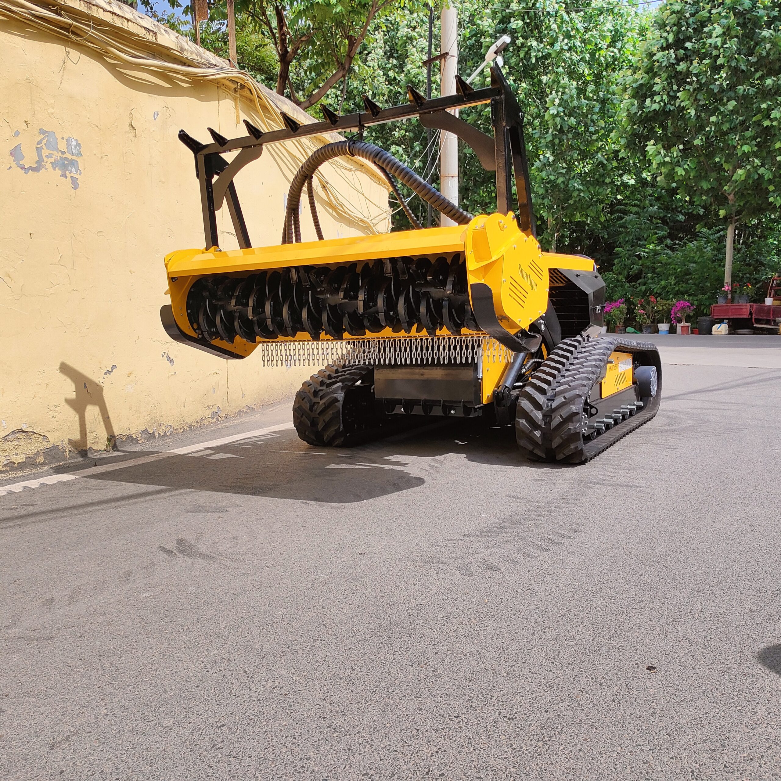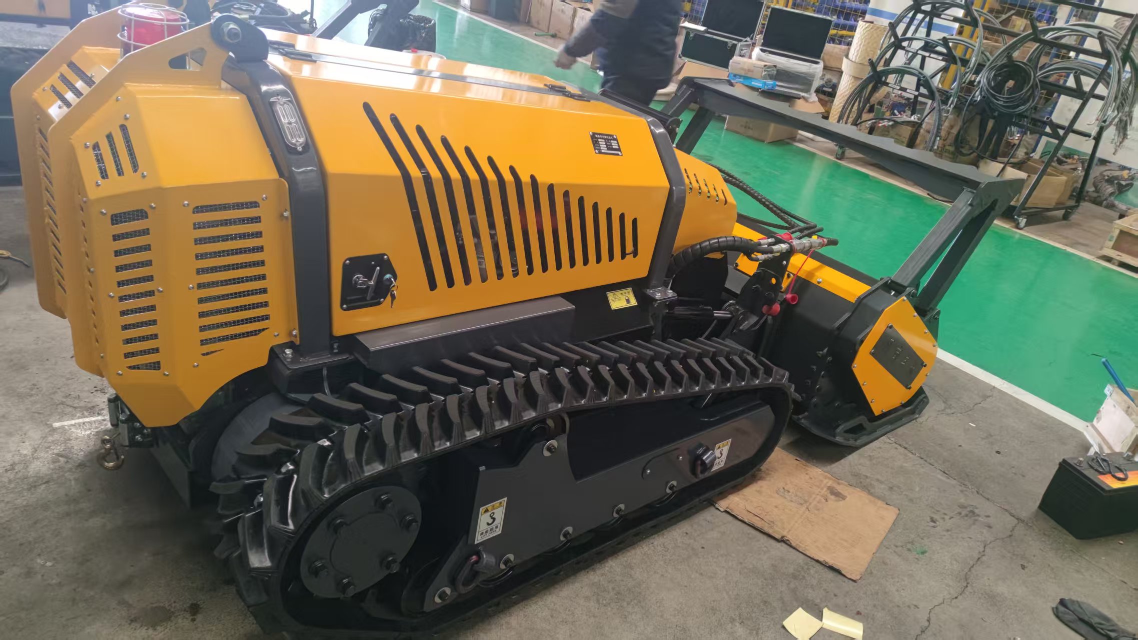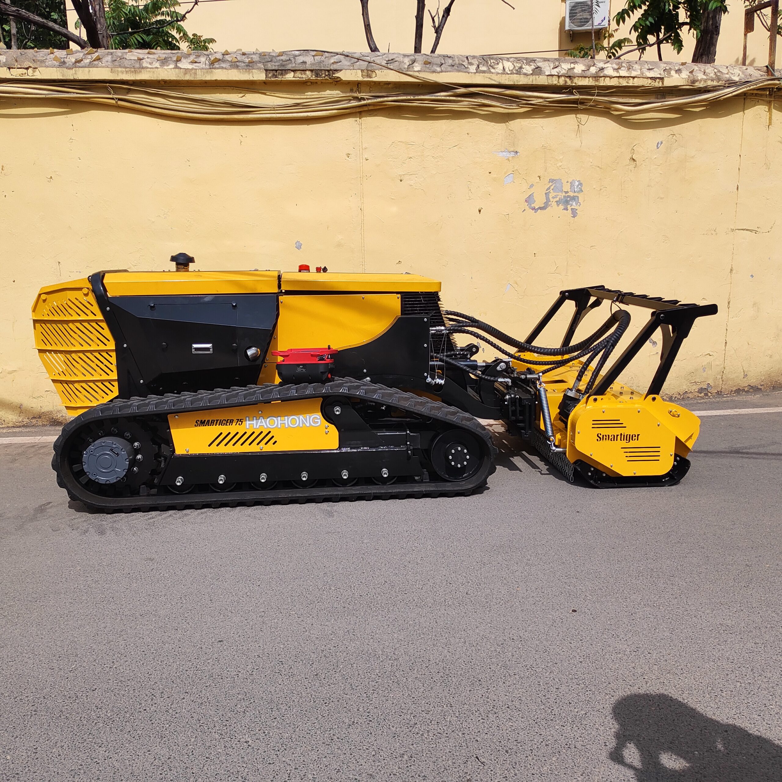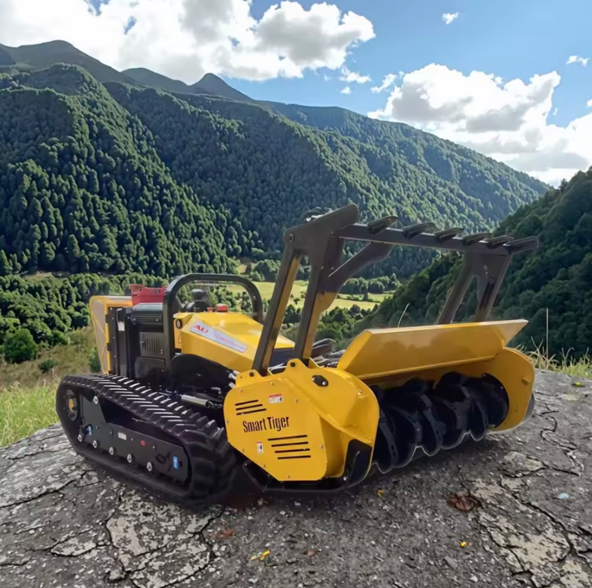 | 1) Custom-designed integrated oil-water cooling system, ensuring effective heat dissipation under any permissible machine operating conditions; 2) Independently developed bidirectional fan system, supporting periodic cleaning of cooler covers and forced cleaning via a miniature air compressor. Incorporates reversible fan blades, controllable by remote or programmed timers, enabling airflow from both sides of the radiator. This simultaneously cools the engine and facilitates dust removal; 3) All operations are remotely controllable via the remote control unit. Every function of this machine is remotely operated, featuring dual-layer safety measures: the machine itself has an emergency stop button, and the programme includes an emergency shutdown function (the machine automatically shuts down if the receiver fails to receive a signal within 2 seconds); 4) Supports on-the-spot turning capability. Dual joystick operation enables turning on the spot and fine-tuning turns during travel; 5) Attachment changeover time <10 minutes (pure operation time). Each attachment can be swiftly exchanged using imported quick-release couplings, significantly extending service life. 6) Equipment maintenance monitoring: Real-time surveillance of water temperature, oil temperature, oil level, RPM, and blockages ensures optimal operational status. The receiver display provides live monitoring of the entire machine’s condition, with sensors detecting whether the machine is functioning normally. |